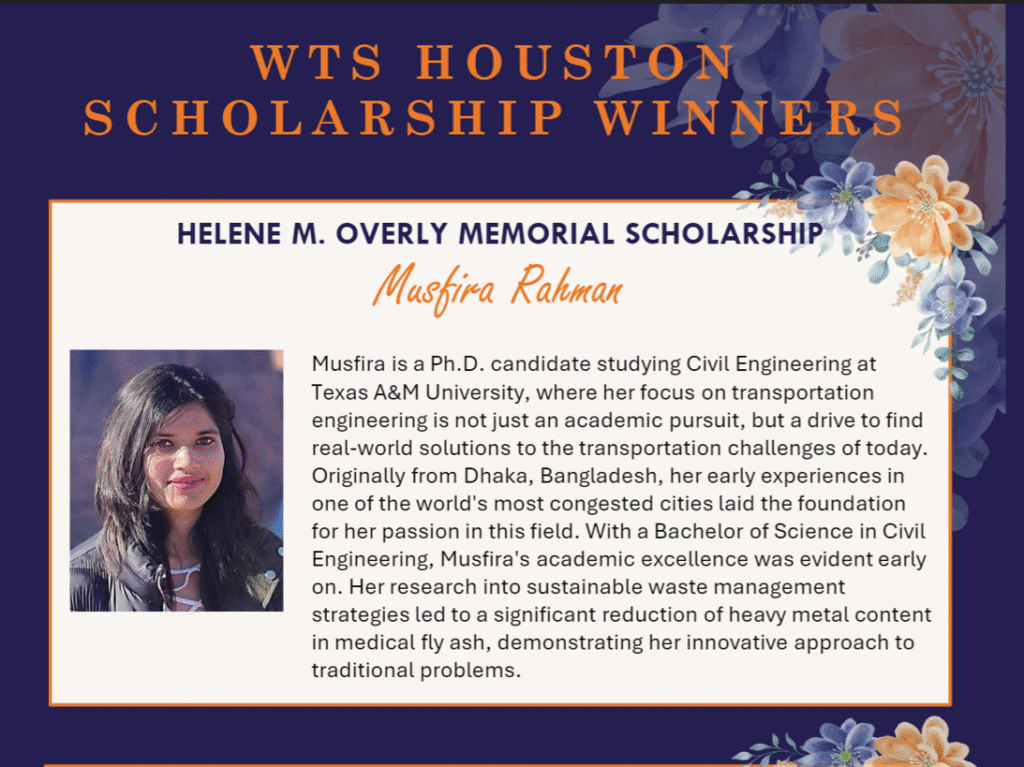I’m Musfira Rahman, a Transportation Researcher and Ph.D. Candidate with Expertise in Managed Lanes Decision Making, Transportation Planning, and Freight Transportation and Logistics